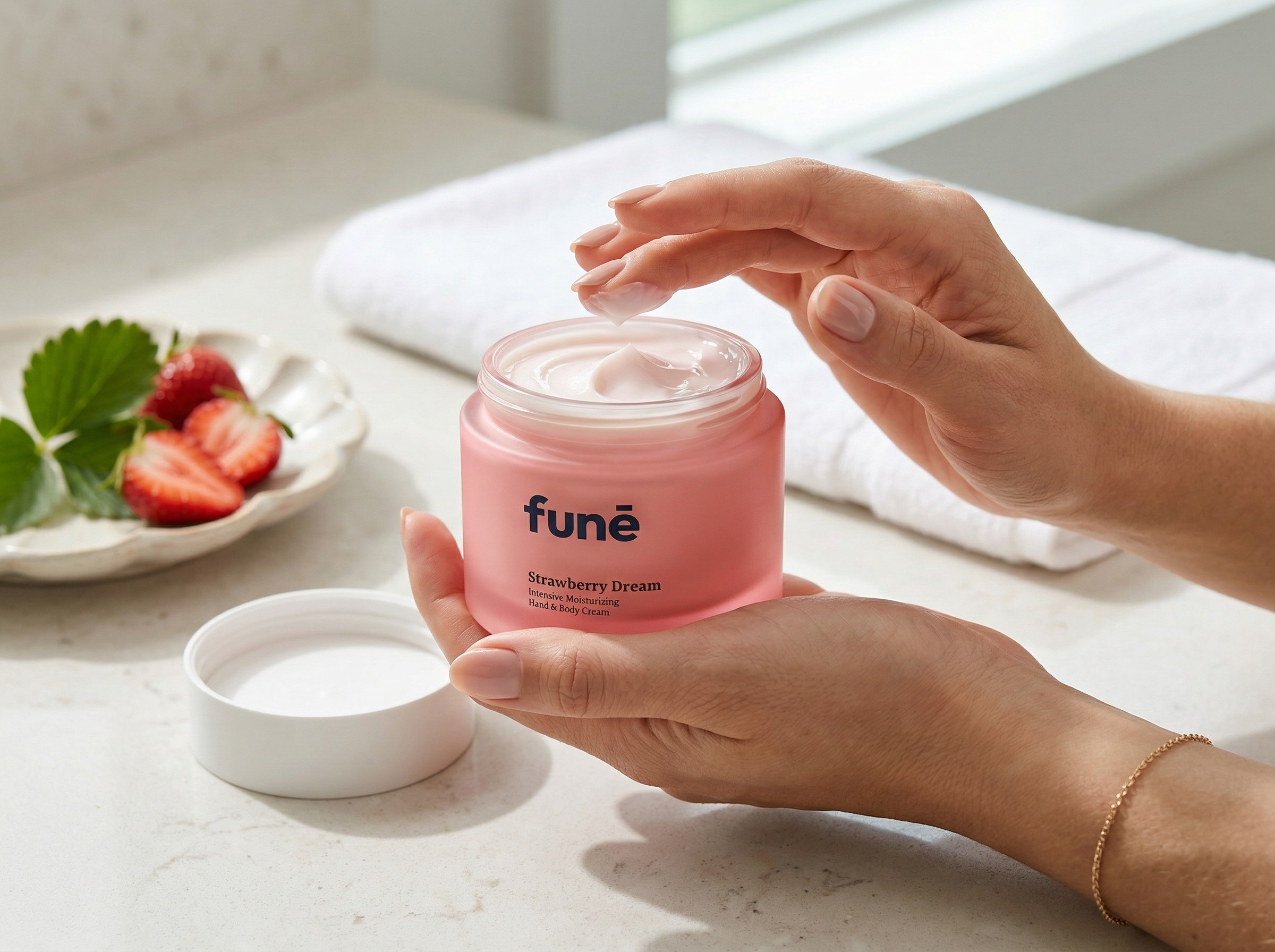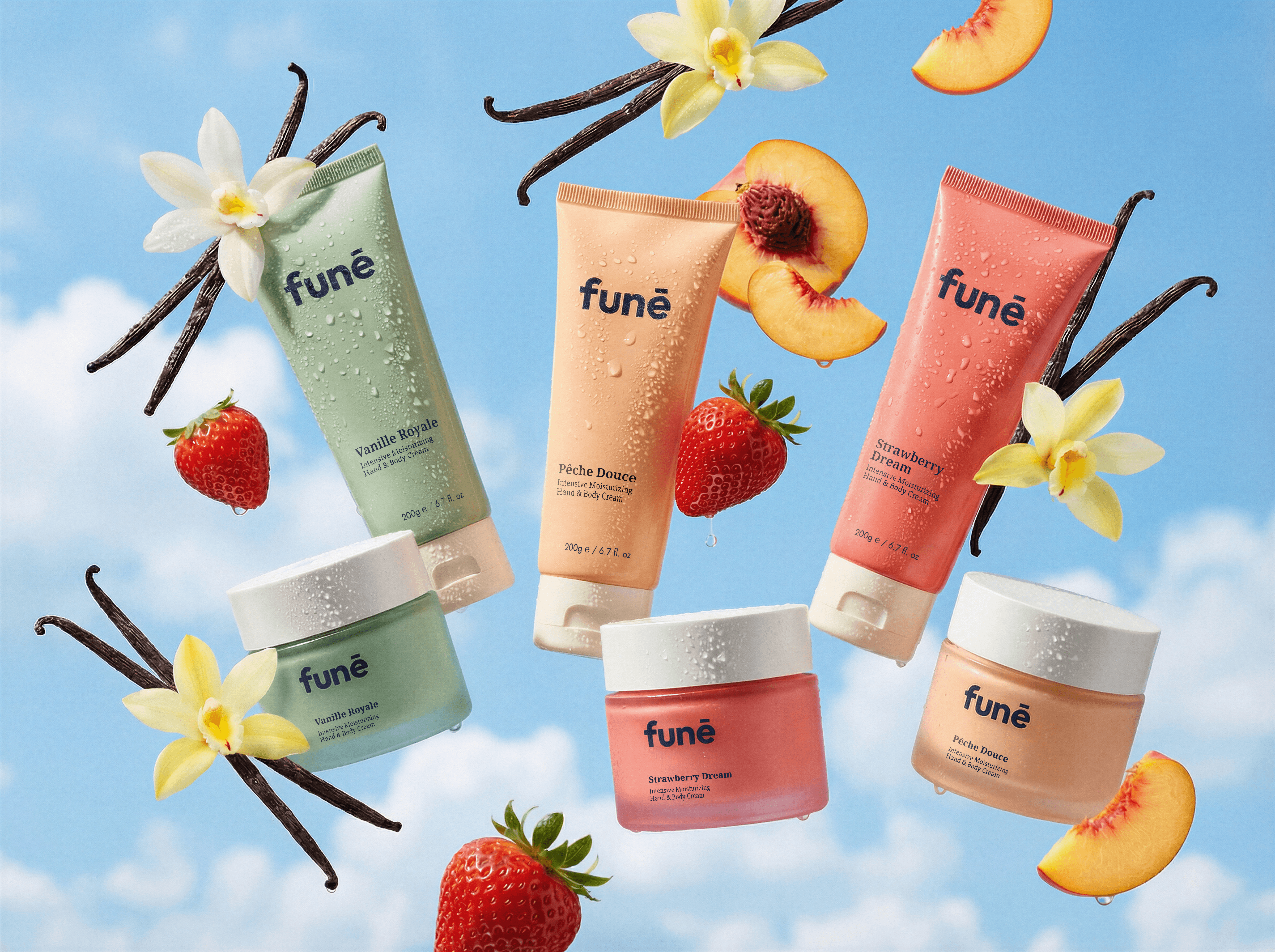 funé is a skincare brand positioned in natural, fun and elegant style. Branding has been done by me and all images are generated with AI, retouched by hand.